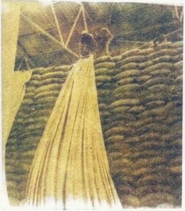 شكل يبين كدس من أكياس فستق الحقل وقدرة 3000 طن يغطي بعدة قطع من التاربولين وتمتد انابيب فيه لتساعد على توزيع الابخرة فيه