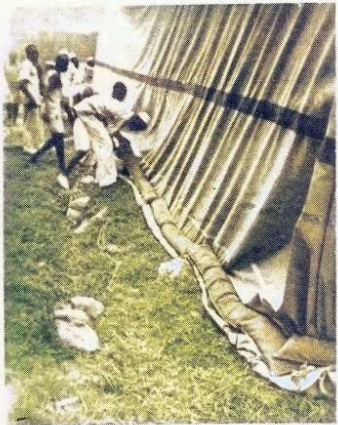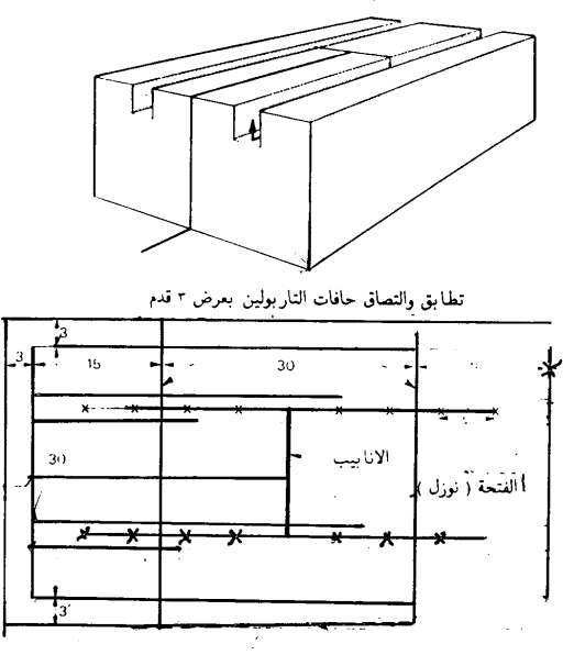 شكل يبين وضع أكياس من الرمل على طول حافة غطاء التاربولين وذلك لمنع تسرب الابخرة