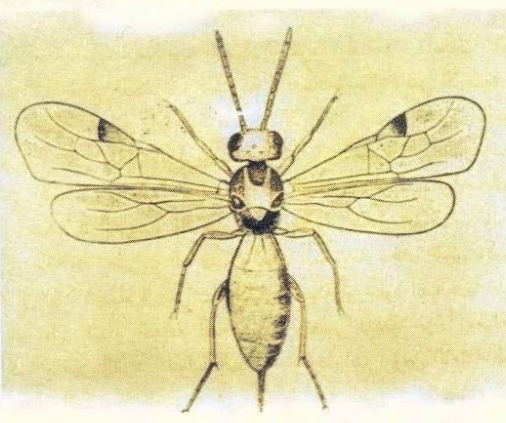شكل يبين انثى الطفيلي Bracon hebetor لاحظ واضع البيض الحاد في نهاية البطن
