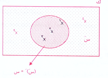 مثال : إذا كانت ك (المجموعة الكلية) = { 1 , 2 , 3 , 4 , 5 } وكانت س = { 2 , 1 , 3 } .