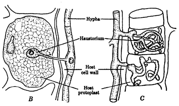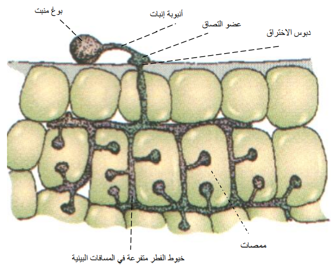 الشكل 9: أشكال مختلفة من الممصات Haustoria