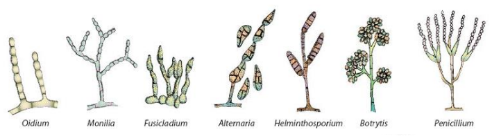 الشكل 10: نماذج مختلفة من الحوامل البوغية عند الفطريات