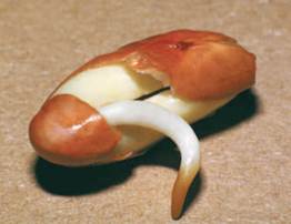 A kidney bean sprouting into a seedling.