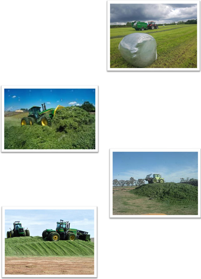 1. يعد محصول العلف بعد الحش بوضعه على هيئة صفوف ذات حجم مناسب ليتم جمعه الى مكان السايلو (الصومعة) المنظف والمعد لذلك.