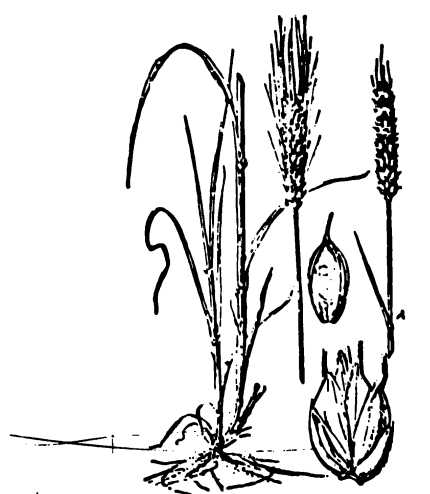 شكل ( 1 ) يبين نبات الحنطة والتفرعات وسنبلتين احداهما بسفا والاخرى بدونها وسنبيلة وزهيرة مغلقة.