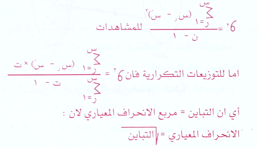 يرتبط بالانحراف المعياري ارتباطاً وثيقاً كونه يكافئ مربع الانحراف المعياري لنفس التوزيع التكراري , أي ن1 :
