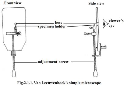 This microscope uses visible light for illuminating the object. It contains glass lenses that magnify the image of the object and focus the light on the retina of the observer’s eye. It has two lenses one at each end of a hollow tube. The lens closer to the object being viewed is called objective lens. The lens closer to the eye is called ocular lens or eyepiece. The object is illuminated by light beneath it. A third lens called condenser lens is located between the object and the light source and it serve to focus the light on the object.