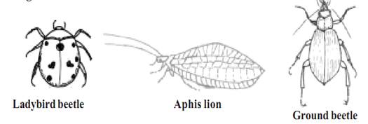These are generally larger than their prey. They can pounce upon and devour the prey easily. Among the insect predators, lady bird beetles are more useful to the farmers and gardeners. These small beetles are voracious and are highly prolific and long-lived. Both larvae and adults feed on a wide range of insects. Other common and well known predators are Aphis lions and ground beetles.