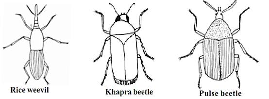 Khapra beetle is a very serious pest of wheat and other stored grains all over India. Only the larval stage is destructive, adult beetle being harmless. The grubs attack the germ portion of the grain. In severe infestation the cereals are reduced to mere frass