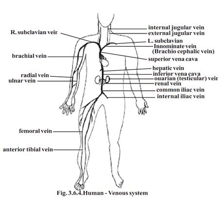 gives rise to hundreds of arteries taking blood to all regions of the body. As the branching happen, the arteries divide into numerous (4 x 106) arterioles. In the target organs they produce four times as many capillaries. A similar number of venules converge into each other forming veins of increasingly larger size. Finally, only two veins, the superior and inferior vena cavae return the blood to the right atrium. Thus the course of blood from left ventricles through the body organs and back to the atrium forms the systemic circulation.