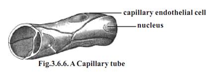 4-Capillaries: - These are fine vessels found between arterioles and venules. They measure 5-8micron in diameter.