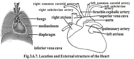 The thoracic organs such as heart, trachea and oesophagus form a midline partition called the mediastinum. The heart lies obliquely in the mediastinum.