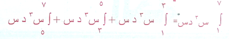 الحد الأعلى للتكامل الأول . يساوي الحد الأسفل للتكامل التالي 3 ولنفس الاقترانات التكاملات جميعها وهو هنا ق(س) س2