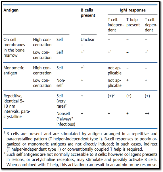 Table 1 B Cells Do Not Differentiate between Self and Nonself Antigens, but Rather Distinguish Repetitive (Usually Nonself) from Monomeric )Usually Self) Antigens