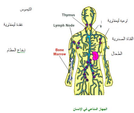 يتألف جهاز المناعة من خلايا الدم البيضاء ومن الاعضاء ألليمفوئيديّة.