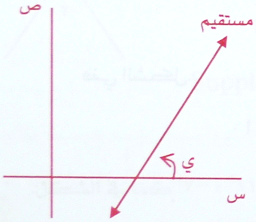 هي الزاوية التي يضعها المستقيم مع الاتجاه الموجب لمحور السينات وظلها يساوي ميل المستقيم كما في الشكل فإن ميل المستقيم = ظا ي .