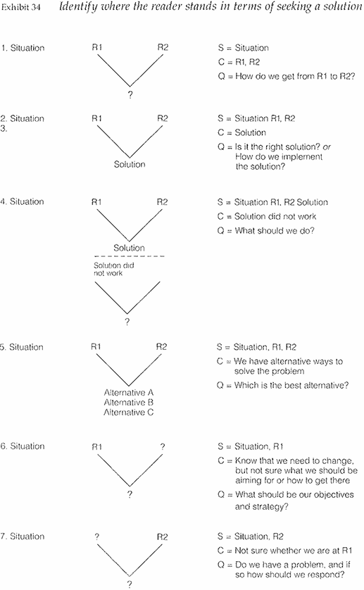 Once you have the basic parts of the problem laid out, you are ready to look for the reader's question. This question will depend on how far along in the problem the reader has progressed before you began to analyze it. Does he simply want to know how to get from R1 to R2? Or has he already decided how to do that, in which case he will of course have a different question.