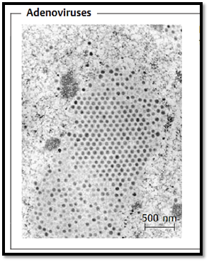 Pathogens. Adenoviruses are nonenveloped, 70-90 nm in size, and icosahedral. Their morphogenesis occurs in the cell nucleus, where they also aggregate to form large crystals (Fig. 1). Their genome is a linear, 36-38 kbp double-stranded DNA. Adenoviruses got their name from the adenoidal tissues (tonsils) in which they were first identified.