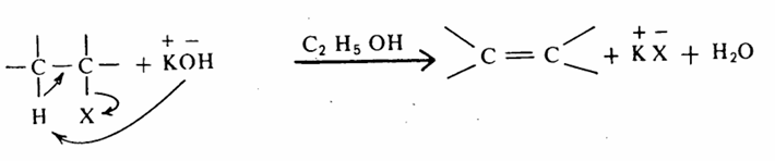 إنتزاع هاليد الهيدروجين من هاليدات الألكيل dehydrohalogenation يمكن أن يتم إنتزاع هاليد الهيدروجين من هاليد الألكيل إذا ما عومل الأخير بقاعدة مناسبة، وأكثر القواعد استخداماً هي هيدروكسيد البوتاسيوم المذابة في الكحول الأثيلي