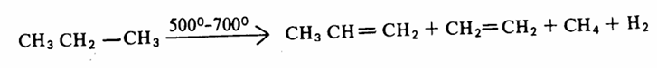 وتتم عملية التكسر الحراري بإمرار بخار المركب الهيدروكربوني فيوجود عامل مساعد مثل أكسيد السلينيوم أو أكسيد الألومنيوم عند درجة حرارة لا تقل عن 500 هم وتحت ضغط. وبدون شك فإن التحلل الحراري للمركبات الألكانية ذات الأوزان الجزيئية المرتفعة يؤدي إلى تكون نواتج مختلفة ولكن أكثر هذه النواتج حصيلة هو مركب الايثيلين .