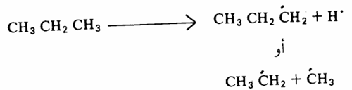 وهذا التفاعل يتم خلال ميكانية تكوين جذور حرة نتيجة كسر الرابطة بين الكربون والكربون أو بین الكربون والهيدروجين
