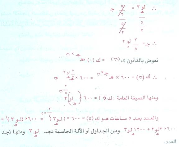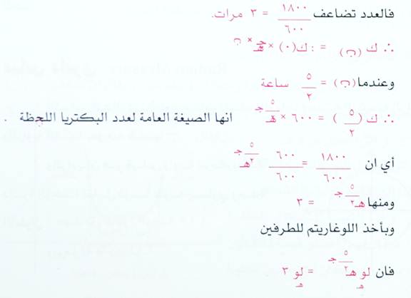 بما ان ك(0) = 600 بكتيريوم ك 52= 1800 بعد ساعتين ونصف .