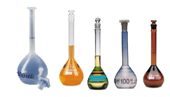 هي أوعية زجاجية لها قعر مستوي وشكل كمتري ينتهي برقبة طويلة ضيقة، وجعلت الرقبة ضيقة بحيث تؤدي التغير ات الصغيرة في الحجم عند إضافة الماء ظهور ارتفاع كبير وملاحظ في سطح السائل، وتوجد العلامة حول عنق الدورق وهي عبارة عن خط محفور في العنق يدل على حجم الدورق وكما يوجد على الدورق درجة حرارة معينة وهي عادة ،(20 c°) وهي منقوش أيضاً على الدورق وتتوفر الدوارق العيارية أو القياسية بسعات مختلفة من (5000 - 5) مل ، وتجهز الدوارق القياسية بأغطية زجاجية أو أغطية من البلاستيك، الشكل 1