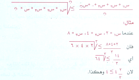 ان الوسط الحسابي لهذه المشاهدات أكبر من أو يساوي الوسط الهندسي لها .