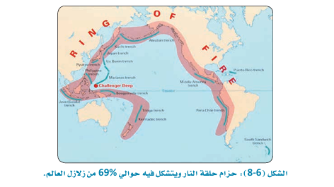 بمقارنة خرائط توزيع الزلازل وحدود الصفائح التكتونية في العالم، نجد أن هناك ارتباطاً وثيقاً بين حدود الصفائح ومناطق النشاط الزلزالي، وعلى هذا الأساس أمكن تحديد ما يسمى بالأحزمة الزلزالية وأهمها حزام حلقة النار (حول المحيط الهادي) Circum-Pacific Belt ويتشكل فيه حوالي 69% من زلازل العالم ويذكر أن 80% من طاقة الزلازل تتواجد في هذا الحزام، ويشمل هذا الحزام الشواطئ الغربية من أمريكا الشمالية وأمريكا الجنوبية واليابان والفلبين حتى يصل إلى أستراليا ونيوزيلندا وتمثل أعتى أنواع الزلازل، وعلى سبيل المثال الزلازل التي حدثت في بيرو 1970 وتشيلي 1985 واليابان 1923 وألاسكا 1964 ، وزلزال اليابان 1995م.