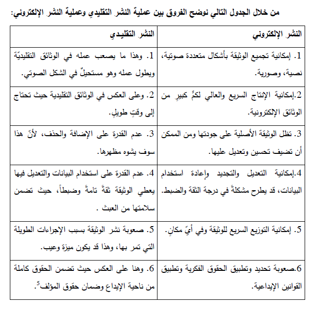 الفرق بين عملية النشر التقليدي وعملية النشر الالكتروني