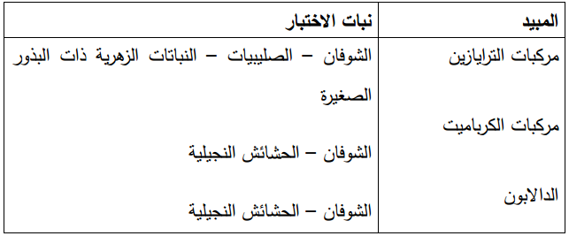 وعند اختيار نباتات الاختبار يفضل التوفيق بين حساسية النبات وإمكانية زراعته في الإصص دون متاعب، فمثلاً حشيشة الراي ryegrass والفاصوليا أكثر تحملاً للأمراض تحت الظروف المعملية والصوب الزجاجية عن نباتات الطماطم واللفت. وفيما يلى أمثلة لبعض النباتات الحساسة التي يمكن استخدامها لتقفي أثر متبقيات بعض مبيدات الحشائش في التربة: