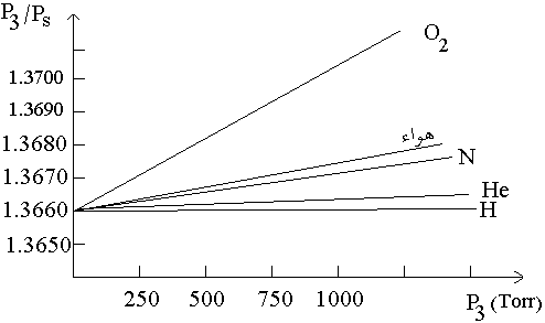 تثبت التجربة أنَّ أفضل موازين الحرارة هي تلك ذات الحجم الغازي الثابت والتي تتفق فيما بينها أكثر ما يُمكن كلَّما كان الضغط عند النقطة الثلاثيَّة للماء منخفضاً. الضغط هو المتغير X هنا. إذا مثَّلنا بيانياً قراءة مثل هذه الموازين كما في الشكل بتمثيل النسبة PS/P3 بين ضغط البخار-الضغط عند نقطة غليان الماء[2]- وضغط النقطة الثلاثيَّة على محور الإحداثيات العمودي (الصادات) بدلالة P3 فإنَّنا نحصل على علاقات خطيَّة تتقاطع جميعها على محور الصادات في نفس النقطة: 1.3660= PS/P3.