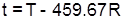حيثُ T تُمثِّل درجة الحرارة الثيرموديناميكيَّة بالرانكين. ووحدة مقياس درجة حرارة فهرنهايْت هي 0F والتي تساوي 0R.