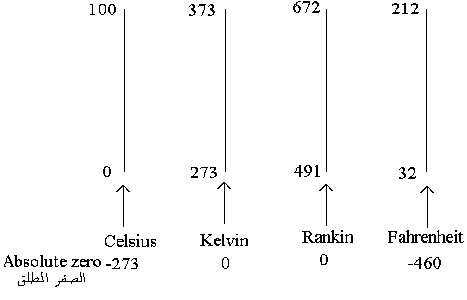 الشكل 2: مقاييس سيلسيوس، كلفن، رانكين وفهرنهايْت