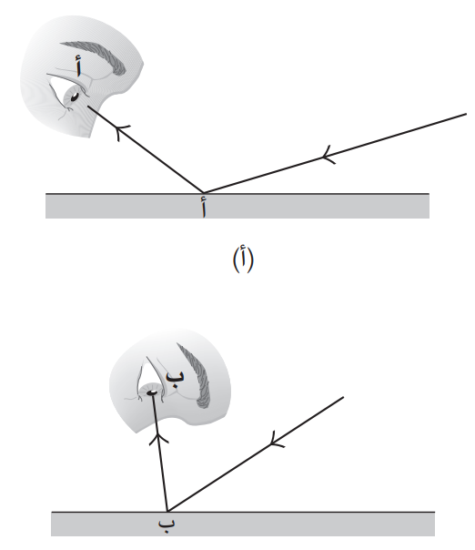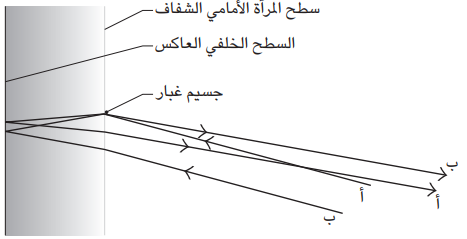 شكل 2: طريقان لتشتت الضوء إلى المشاهد من جسيم غبار أمام مرآة.