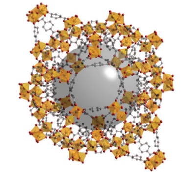 These materials have potential applications in gas storage, for example of H2 and CO2. The very large pores allow large, complex molecules such as many pharmaceutically active compounds to be inserted into them and a further application is the use of these MOFs as drug delivery agents. Here an active compound, for example the painkiller ibuprofen, is adsorbed within the MOF pore from which it can then be released slowly, where required, in the human body.