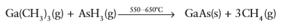 Key point: In chemical vapour deposition methods, a vapour of molecules chemically interact or decompose at or near the substrate, where they adsorb on the surface and combine with other species to create a solid and residual gaseous product. The control over complex stoichiometries, the ability to achieve monolayer-by-monolayer growth, and the attainment of high-quality films is not limited to physical vapour techniques. Chemical techniques, such as metal/organic chemical vapour deposition (MOCVD) and atomic layer deposition (ALD), also provide these levels of control. In contrast to physical methods, in which species condense directly onto a substrate and react with one another, chemical techniques require that a precursor decomposes chemically on or near the substrate in order to deliver the reactant species to the growing film. Therefore, in chemical vapour methods, the decomposition thermodynamics of the selected precursors must be considered because the vapour often contains elements that must not be incorporated in the growing films. Typically, the kinetic energy of the arriving species is relatively low in chemical techniques, and the temperature of the substrate can be controlled externally. The layout of a typical chemical vapour deposition (CVD) system was shown Fig. 25.5. Such systems normally operate at moderate vacuum or even at atmospheric pressure (in the region of 0.1–100 kPa). Their growth rates can be quite high, more than 10 times that of MBE or PLD. In CVD techniques, chemical decomposition of the feed molecules proceeds upstream of a substrate surface on which the desired product will be grown. The decomposition of the gaseous reactants is activated by high temperatures, lasers, or plasmas. Large numbers of different materials have been grown using CVD methods. For Group 13/15 (III/V) semiconductors (such as GaAs), the typical sources are organometallic precursors for the Group 13 element (such as Ga (CH3)3), and hydrides or chlorides for the Group 15 element (such as AsH3). A typical reaction is