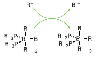 Figure 26.12 The exchange of a halide for an organic fragment at a Pd centre can be thought of as nucleophilic displacement.