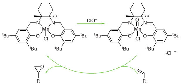 Figure 26.10 The Jacobsen epoxidation relies on a manganese complex of a salen-based ligand and chlorate(I).