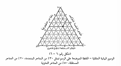 تستخدم طريقة الرسوم البيانية المثلثية بنفس فكرة انشائها في تمثيل بعض البيانات الخاصة بالعمران ومن أشهر الأمثلة لتطبيق هذه الطريقة ما قام به ثورعند دراسته لمراكز الشراء والتسوق في بريطانيا Thorne (1968) والتي قام فيها بتصنيف متاجر المبيعات المركزية الرئيسية إلى ثلاثة أنواع رئيسية هي المتاجر متعددة الأغراض والمتاجر التعاونية ومتاجر القطاع الخاص. وبواسطة الرسوم البيانية المثلثية استطاع ثورب أن يوضح مقدار النجاح الذي وصلت إليه مختلف أنواع هذه المتاجر في مجموعات متباينة من المدن الانجليزية.