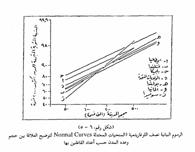 ويستخدم لرسم الخطوط البيانية اللوغاريتمية ورق رسم بیاني خاص يسمى باللوحات اللوغاريتمية وعند تنفيذ هذه الخطوط نقوم بوضع رسم أي سلسلة القيم أمام التقسيمات المحددة على المحور مادامت تتناسب مع هذه التقسيمات وفق لدورات اللوغاريتمية المتماثلة في المساحة التي تشغلها على لوحة الرسم. وهناك نمطين من أنماط التمثيل البياني اللوغاريتمي أحدهما يعرف بالنمط اللوغاريتمي الكامل والآخر يطلق عليه اسم النمط نصف اللوغاريتمي وفي النمط اللوغاريتمي الكامل يقسم كل من المحورين الأفقي والرأسي تقسيما لوغاريتميا وذلك عندما نريد دراسة العلاقة بين لوغاريتمات قيم المتغير الأول ولوغاريتمات قيم المتغير الثاني وبصفة عامة هناك لوحات جاهزة من الورق اللوغاريتمي تغنينا عن استخدام لوغاريتمات المتغيرات المختلفة عندما نزيد توضيح التوزيع النسبي لقيم هذه المتغيرات، كما تعفينا من الوقت والجهد الذي يستغرق في انشاء مثل هذه اللحات، إذ تقوم هذه اللوحات المقسمة لوغاريتميا مقام الجداول وتعطى مباشرة النتائج المطلوبة ومن خيراً أمثلة هذا النوع من الرسوم البيانية ذلك الذي تستخدم لتوضيح مراتب المدن حسب عدد سكان المدينة ورتبتها أما النمط نصف اللوغاريتمي فهو لا يختلف كثيرا عن النمط السابق إلا في أن أحد المحورين لا يقسم تقسيما لوغاريتميا بل يقسم تقسيما حسابيا، وعادة يكون التقسيم اللوغاريتمي على المحور الرأسي فقط ويسود استخدام النمط نصف اللوغاريتمى عندما يراد تمثيل بعض معدلات النمو الرسم البياني اللوغاريتمي الكامل مراتب المدن السورية في بداية عام 1987 حسب قاعدة زييف لأي ظاهرة تتغير تغيرا زمنيا مثل ظاهرة نمو السكان، أو أي ظاهرة أخرى تتفاوت في خصائصها مثل تباين توزيع أحجام المدن فى مختلف الدول ففي حالة تمثيل أعداد السكان أمام سنوات التعدادات المختلفة على ورق الرسم البياني نصف اللوغاريتمي يمكن أن نقف على ما إذا كان نمو السكان فيما بين هذه التعدادات يتخذ معدلات ثابتا أو متزايدا أو متناقصا بمجرد النظر إلى الخط البياني على الرسم والذي إذا اتخذ شكل الخط المستقيم فإن ذلك يدل على أن السكان يتزايدون معدل ثابت ، أما في حالة استخدام هذا النمط من الرسم البياني النصف اللوغاريتمي لبيان توزيع أحجام المدن في بعض الدول مثلا، فإن الخط البياني الى الرسم إذا كان خطا مستقيما فإنه دل على التوزيع المعتدل الأحجام المدن في الدولة التي يمثلها هذا الخط ، كما يمكن أن نستخلص بعض الحقائق الهامة من الخطوط البيانية الى هذا الرسم والتي منها أن أعلى الخطوط يدل على زيادة نسبة إعداد المدن الصغيرة الحجم (كما في حالة دولة بليجيكا) ، وأن أشد الخطوط المستقيمة انحدارا (أو ميلا) يدل على صفر نسبة أعداد المدن الكبيرة الحجم كما في حالة دولة سويسرا.