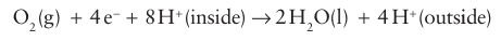 The enzyme contains two proton-transfer channels, one of which is used to supply the protons needed for H2O production while the other is used for protons that are being pumped across the membrane. Figure 27.36 shows the proposed catalytic cycle.