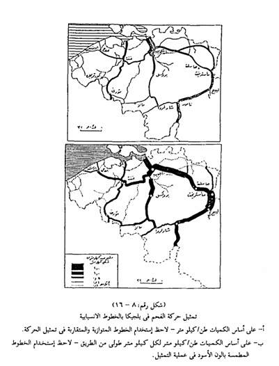 وتتلخص الطريقة الكارتوجرافية المتبعة في رسم الخطوط الانسيابية في اختيار وحدة سمك مناسبة مثلا ملليمتر يمثل 500 طن، وبالتالي فإن كمية مقدارها 2000 طن يجب تمثيلها بخطوط سمكه 4 ملليمتر، وكمية أخرى مقدارها 3500 يمثلها خط سمكه 7 ملليمتر، وهكذا. ومن ثم يمكن القول بأن وحدة السمك التي نختارها كأساس لسمك الخطوط ينبغي أن نقسم عليها كل المقادير المراد تمثيلها على طول الطرق مما يؤدي إلى اختلاف سمك الخط تبعا للكمية التي يمثلها أو يعبر عنها. وينبغي أن نحافظ على وحدة السمك لأي خط من الخطوط الانسيابية، ويتم ذلك بإستخدام أنواع خاصة من أقلام الجدول التي ترسم خطين مزدوجين ثم تملأ المسافة بينهما بالحبر الأسود، أو رسم حزمة من الخطوط المتوازية والمتقاربة على امتداد الطريق.