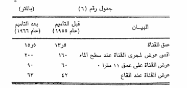 وتم تأميم قناة السويس واعادتها الى أصحابها المصريين عام 1956 واهتم منذ ذلك الحين بتطوير القناة ورفع كفاءتها لخدمة التجارة البحرية الدولية ، ويبين الجدول رقم (6) مواصفات قناة السويس قبل وبعد التأميم.