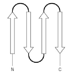 Figure 1. Schematic representation of a b-meander consisting of four b-strands (shown as arrows).