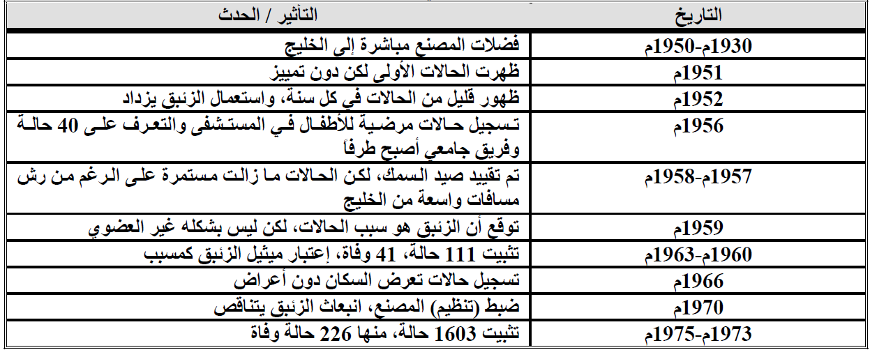 إن أعراض المرض الذي ظهر في ميناماتا في اليابان تمت ملاحظته في القطط وبعدها في الإنسان. وتشمل الأعراض انحطاط النظام العصبي مع فقدان الرؤية والسمع والكلام والسيطرة على الحركة.