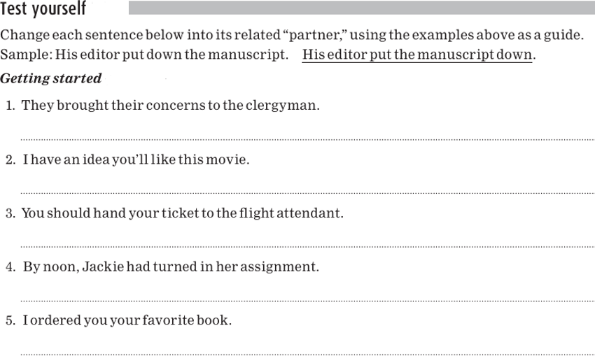 You can see that one member of each pair is related to the other in a systematic way: the verb and its particle (both underlined) can either be next to each other or the particle can be on the other side of the next noun phrase. The important point here is that we can’t change the structure of a sentence in any random way. For example, we can’t say *She up looked the answer.