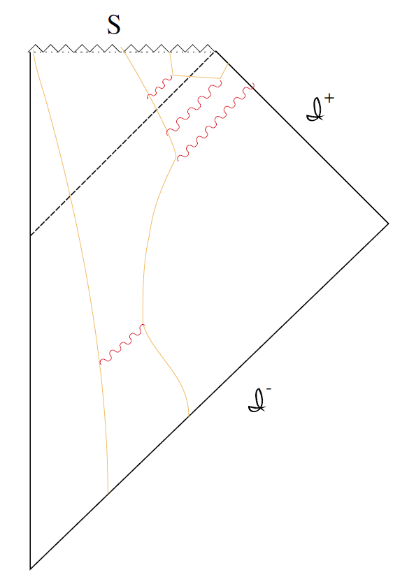 To state the problem, let's begin with a black hole that has been formed during a collapse. The Penrose diagram is shown in Figure 1.1. Following Hawking, we think of the geometry as a background on which we can formulate quantum field theory. Let us concentrate on a theory of massless particles.