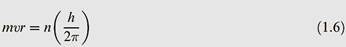 If we apply the Bohr model to the H atom, the radius of each allowed circular orbit can be determined from equation 1.8. The origin of this expression lies in the centrifugal force acting on the electron as it moves in its circular orbit; for the orbit to be maintained, the centrifugal force must equal the force of attraction between the negatively charged electron and the positively charged nucleus.