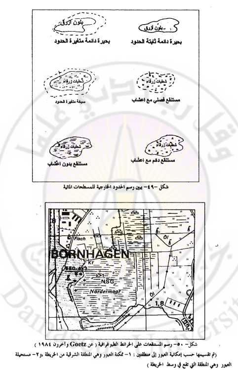 تمثل الجموديات بنقاط زرقاء على الخرائط الكبيرة والمتوسطة المقياس، ويراعى عند الرسم ابراز اتجاه الالسنة الجليدية أو سمك الغطاء الجليدي الدائم، فيعين بمنحنيات التسوية على الخرائط المتوسطة والصغيرة المقياس كما ترسم حدود الثلج الدائم على الخرائط العامة، أما حدود الغطاء الثلجي في فصل الشتاء فقلما يمثل على الخرائط الطبوغرافية والعامة، ولكن يمثل على الخرائط الخاصة بموضوعات لها علاقة بالغطاء الثلجي وحدوده.
